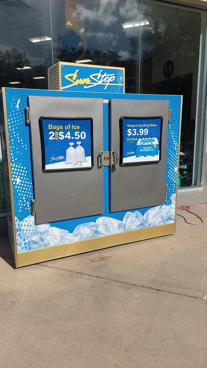 I took some pics of some things that delighted me on our road trip. Ice, y’all!! You can just go to the store and get a bag of ice. This same task is a quest in Portugal.