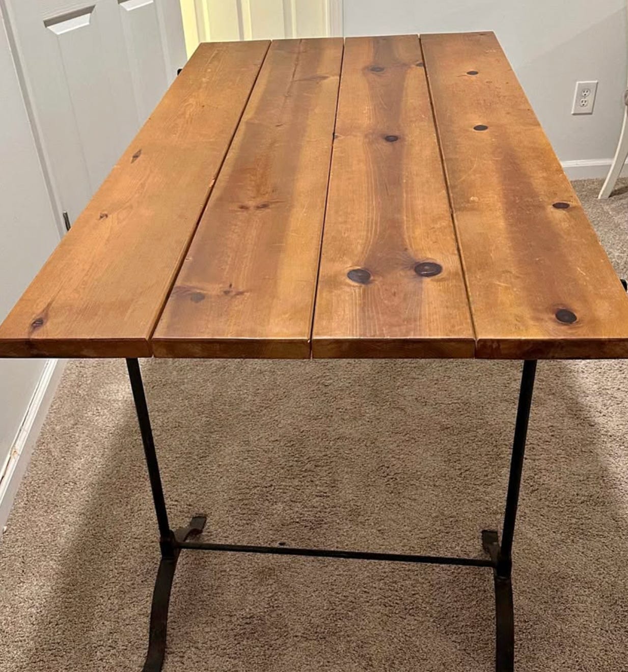 It occurred to me today that we have not entertained anyone in our home for a full two years. For a self proclaimed hospitalityaholic2, that is basically criminal. A couple of months ago I got on a kick that we were going to zhuzh3 up our little apartment porch. I scoured Facebook Marketplace for the perfect pieces and found a trestle table from Pottery Barn some lovely lady in Johns Creek had for sale at a steal. I dragged E over to her house and then we had to figure out how to fit this thing in our Honda Accord. Eric tetris-ed4 it into the car and now it lives on our porch… where it is too dang cold to sit right now.